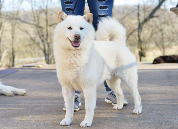 Cream shibas are solid white, usually with some tan on the ears.